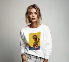 Un paesaggio vibrante e fantasioso, con una montagna sotto un sole radioso e un fiume arcobaleno colorato che la attraversa. Il design stilizzato e giocoso è pieno di gioia ed energia creativa.
