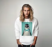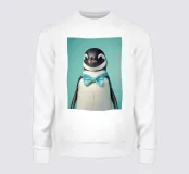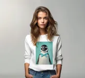 Un'illustrazione divertente ed elegante di un pinguino con papillon in una moderna tavolozza di colori verde acqua. Questa stravagante opera d'arte conferisce un'atmosfera giocosa ed elegante a qualsiasi parete. Perfetto per gli amanti degli animali, per le camere dei bambini, per gli uffici o come regalo unico.