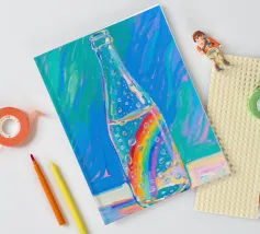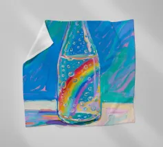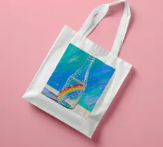 Pioggia in una bottiglia di vetro con arcobaleno con pittura fauvismo stile arte