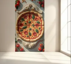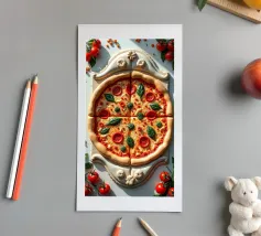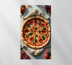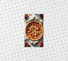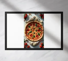Una pizza con salame, pomodori e formaggio - dura come una roccia. Fatta di marmo, non è fatta per essere mangiata. Serve solo come opera d'arte, un vero peccato... ridere.