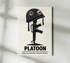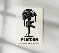 Stampa Platoon, Poster cinematografico alternativo, Minimalista, Arte da parete, Bianco e nero, Stampe di qualità, Fucile, Casco, Arte vettoriale, Regalo per fan del cinema