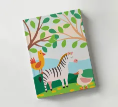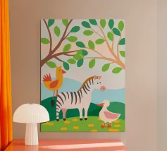 Decorate la vostra casa o il vostro ufficio con questa illustrazione unica di pollo e anatra zebrati! Questo disegno, che combina i motivi zebrati di un pollo e di un'anatra, conferisce al vostro spazio un tocco artistico e moderno.