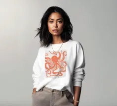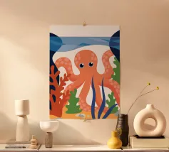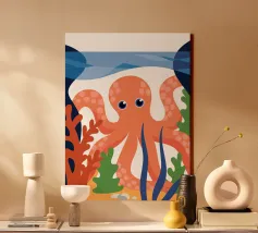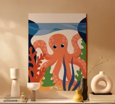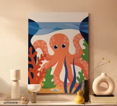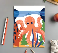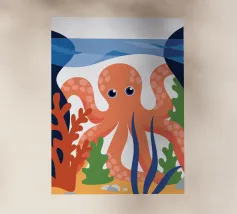 Godetevi questa adorabile illustrazione vettoriale con un allegro polpo nel mezzo di un bellissimo oceano.