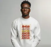 Esprimete i vostri sentimenti con stile con questo poster Amor dalla grafica retrò e colorata. La ripetizione della parola "Amor" crea un effetto visivo forte e moderno, ideale per una decorazione murale romantica, pop e allegra.