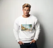 Questo vivace poster in stile retrò cattura il fascino solare della spiaggia di Sharm El-Sheikh. L'opera d'arte presenta una scena vivace con una splendida architettura costiera, palme lussureggianti e persone che si rilassano sulla spiaggia. Il mare turchese e le spiagge sabbiose sono resi con uno stile artistico dinamico e colorato, che evoca un senso di calore e di beatitudine vacanziera. La palette di colori caldi e invitanti e le pennellate fluide conferiscono all'immagine un'atmosfera unica e accattivante. Questo poster digitale di alta qualità (7000x5000 pixel, 300 dpi) è un'opera d'arte di prima qualità che celebra l'atmosfera serena e bella di questa spiaggia.