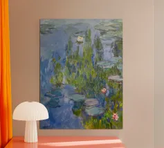 Quadro di ninfee in stile Monet, stampa di ninfee rosa e blu morbido