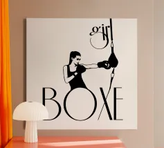 una ragazza si allena alla boxe con un punching ball e la frase stilizzata "Girl Boxe", abbiamo creato questa illustrazione molto adatta per abbigliamento e accessori ma anche su alcuni oggetti per la casa e accessori tecnologici