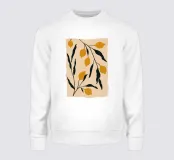 Illustrazione minimalista di un ramo di limone con frutti e foglie su uno sfondo neutro e strutturato. Lo stile è elegante, semplice e con un'atmosfera moderna e rustica.