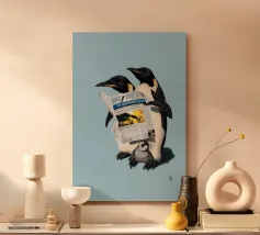 Illustrazione comica dell'interpretazione della barzelletta in bianco e nero, riguardante i pinguini e i giornali.