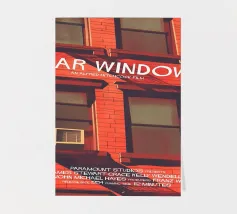Questo design cattura la tensione voyeuristica, il fascino vintage e il dramma delle ombre del film attraverso cornici di finestre minimaliste, palette tenui e silhouette di vita cittadina.