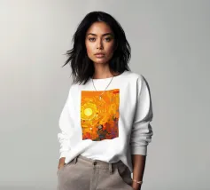 Un dipinto digitale astratto e dinamico, caratterizzato da forme geometriche dai contorni netti e dalle vivaci sfumature rosse, arancioni e gialle, su uno sfondo nero e bordeaux intenso. Il disegno evoca calore, energia e contrasto attraverso il colore intenso e la frammentazione angolare.