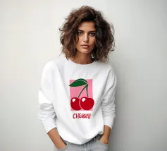Un'illustrazione giocosa e minimalista con ciliegie rosse e un tocco di scrittura a mano. Semplice, fresca e piena di fascino, perfetta per aggiungere un tocco di colore a qualsiasi spazio.