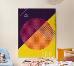 Questo colorato design in stile pop art retrò combina audaci motivi geometrici con colori vivaci come il rosa, il giallo e il viola. I punti, le linee e le forme accattivanti creano un'estetica dinamica e moderna che rende ogni prodotto un'attrazione per gli occhi. Ideale come murale, cuscino, tazza o custodia per cellulare per chi ama i disegni creativi e vivaci. Perfetto per gli amanti del retrò, per gli ambienti moderni e per le decorazioni di stile che emanano energia e gioia. Un regalo stimolante per gli appassionati di arte e design.