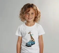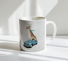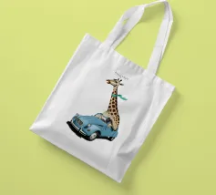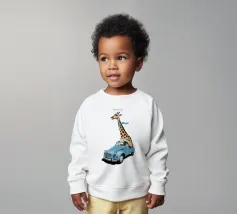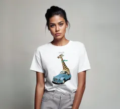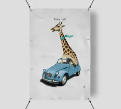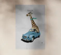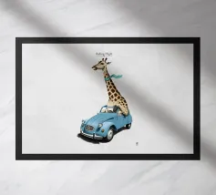 Illustrazione umoristica delle altezze che una giraffa può raggiungere, guidando una 2CV alla moda. Non c'è che da essere orgogliosi di alzare la testa per amore della propria auto!