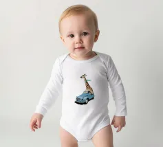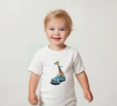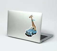 Illustrazione umoristica delle altezze che una giraffa può raggiungere, guidando una 2CV alla moda. Non c'è che da essere orgogliosi di alzare la testa per amore della propria auto!