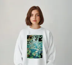 Questo elegante dipinto a olio mostra romantiche ninfee in morbide tonalità verde pastello che si riflettono nell'acqua, catturando la bellezza della natura in un lago armonioso.