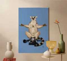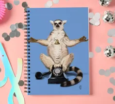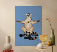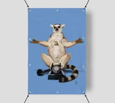 Illustrazione comica dell'intreccio di due significati della parola "squillo". Il paziente lemure siede in cima al telefono in attesa che squilli, con la coda ad anello avvolta intorno.