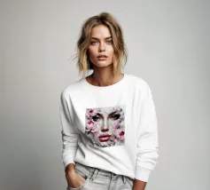 Ritratto di bella donna con fiori di campo e petali sul viso.