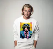 Quadro pop art - Scimpanzé caratteristico con accenti al neon Questo dipinto espressivo dona colore e umorismo a qualsiasi prodotto: i colori vivaci e lo stile giocoso rendono quest'opera d'arte un vero e proprio richiamo visivo.