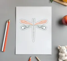 Illustrazione delicata e moderna di una libellula in verde salvia e rosa. Elegante e serena, perfetta per aggiungere un tocco di bellezza ispirata alla natura a qualsiasi spazio.