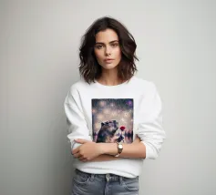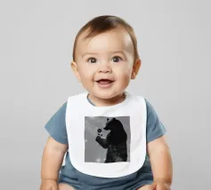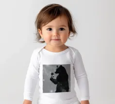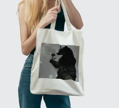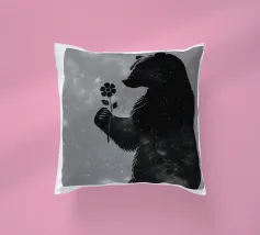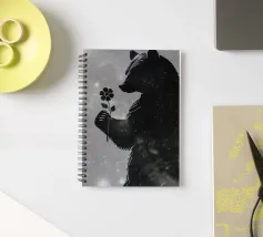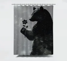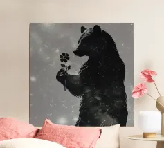 Questa incantevole opera d'arte mostra la silhouette di un orso che tiene delicatamente un fiore tra le zampe su uno sfondo stellato e mistico. L'armoniosa combinazione di buio, luce e natura crea un'atmosfera unica che invita a sognare. Un motivo perfetto per chi ama la magia della natura e degli animali.Sagoma di un orso con un fiore
