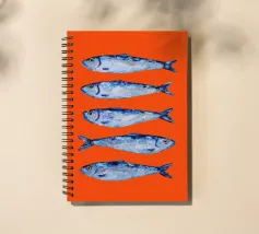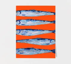 "Sardines on Orange" è un disegno vibrante e giocoso che mostra una disposizione sorprendente di cinque sardine, con una che nuota ribelle nella direzione opposta. Su un audace sfondo arancione, l'opera celebra l'individualità e il movimento, combinando un senso di nostalgia con un tocco di colore contemporaneo. Perfetto come stampa d'arte o come pezzo da indossare, dona un tocco di carattere e fascino a qualsiasi spazio o abbigliamento.