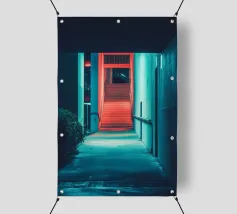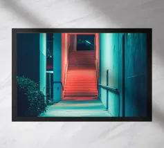 Una salita accattivante che invita all'esplorazione. Questa scala, illuminata nei toni del blu e del rosso, evoca un'atmosfera futuristica ed enigmatica. Ideale per chi cerca un tocco di evasione visiva.