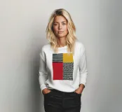 Design nordico scandinavo. Questo design combina la chiarezza scandinava con l'astrazione moderna. Forme chiare e geometriche incontrano una palette di colori vivaci come il rosso, il blu e l'arancione, creando un gioco armonioso di struttura e dinamismo. Minimalista ma espressivo, aggiunge un tocco artistico e contemporaneo a qualsiasi ambiente o prodotto.