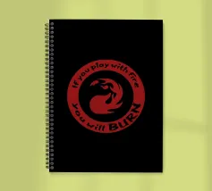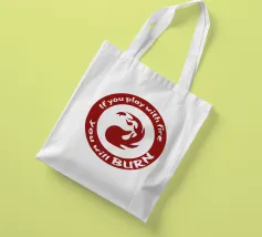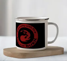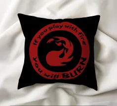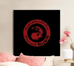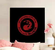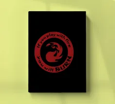 Un simbolo di mana rosso ornato dalla frase "Se giochi con il fuoco brucerai". Quest'opera mostra la natura di un mazzo burn mono-rosso. Per gli amanti della magia che comprendono l'essenza di questo mazzo, quest'opera è perfetta per evidenziare le qualità del burn.