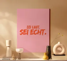 Coraggio per l'autenticità! "Siate forti. Sii reale". in arancione su sfondo rosa vi ricorda di essere voi stessi e di non scendere a compromessi.