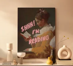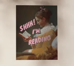 "Shhh! I'm Reading" è un'ode a tutti coloro che preferiscono sparire in un buon libro piuttosto che chiacchierare del tempo. Un dipinto a olio d'epoca di una giovane donna che legge, dipinto con audaci pennellate rosa che dichiarano l'ovvio: "Shhh! Sto leggendo". L'arte classica incontra l'attitudine moderna: un pezzo forte per gli amanti dei libri che sanno che il silenzio e le storie sono il modo migliore per passare il tempo.