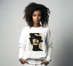 Accattivante fusione di minimalismo ed emozione, Silent Muse ritrae un sereno volto femminile che si fonde con una geometria astratta. I toni morbidi della pelle contrastano con blocchi audaci di rosso, nero e crema, formando una composizione a forma di cuore che simboleggia la calma interiore e la forza tranquilla. Gli occhi chiusi e i tratti delicati evocano eleganza, mistero e bellezza senza tempo: un'icona moderna dell'introspezione.