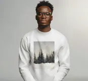 Un dipinto invernale d'atmosfera che cattura la semplice bellezza della natura. Abeti rossi scuri si stagliano contro un cielo grigio e soffice, mentre il terreno riposa sotto una spessa coltre di neve. La struttura fine delle pennellate conferisce al dipinto profondità e un'atmosfera tranquilla. Questa scena ricorda la forza tranquilla dell'inverno, quei momenti in cui il mondo si riposa.