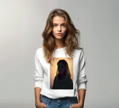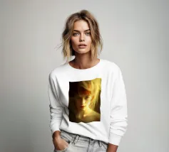 Una donna in piedi in un ambiente tranquillo con i capelli illuminati da un caldo bagliore dorato. La luce soffusa mette in risalto la sua silhouette su uno sfondo da sogno durante il tramonto.