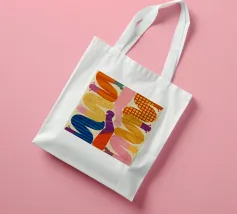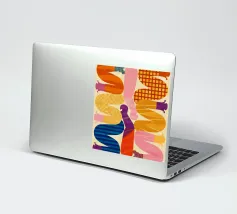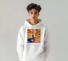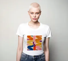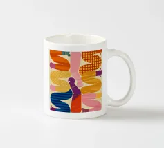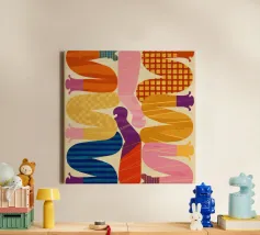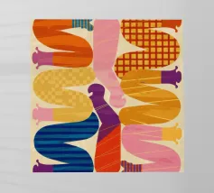 Due figure astratte e intrecciate, composte da segmenti colorati e disegnati, che celebrano la connessione, la diversità e la forma umana in uno stile grafico moderno.