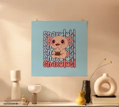 Questa opera d'arte gioca sul gioco di parole tra "snack" e "axolotl", creando una stampa dolce e giocosa.