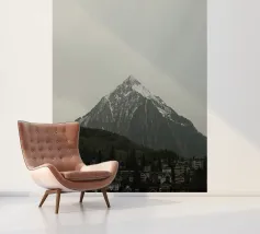 a sua immagine cattura il maestoso Monte Niesen, noto anche come "Piramide svizzera", con la sua cima innevata che si staglia contro un cielo nuvoloso. La montagna è un elemento di spicco delle Alpi Bernesi, in Svizzera.