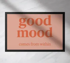 Questo poster positivo in rosa tenue e arancione vivace vi ricorda che il buon umore inizia dentro di voi. L'armoniosa combinazione di colori incontra un messaggio chiaro, perfetto per la casa, l'ufficio o lo studio. Ideale per chiunque si concentri consapevolmente sull'umore, sulla cura di sé e sull'energia positiva. Un design che fa sentire bene.