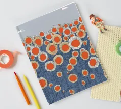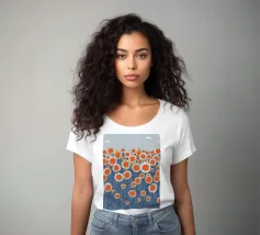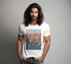 Un mare grafico di fiori pieno di energia: i girasoli arancioni brillanti si stagliano nettamente sullo sfondo blu profondo e creano un gioco moderno e colorato di natura e geometria. Piccoli uccelli aggiungono accenti sottili e invitano all'esplorazione. Questa illustrazione porta l'estate, la leggerezza e il buon umore direttamente sulla parete.