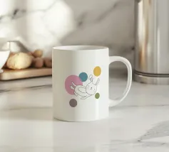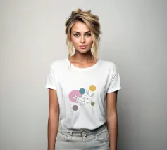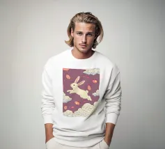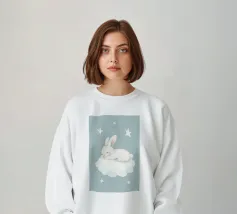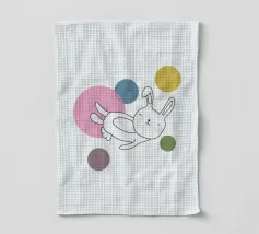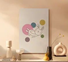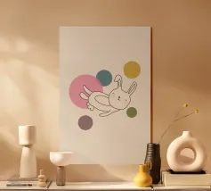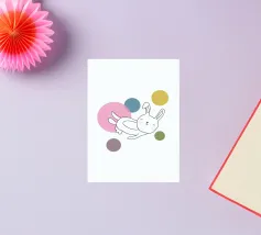 Illustrazione di un simpatico coniglio che salta nello spazio. "Neo" fa parte della collezione Space Rabbits.