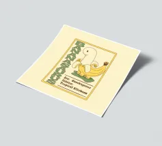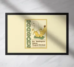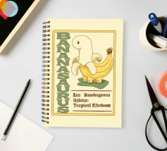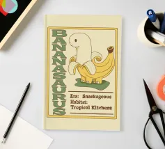 Una banana-dinosauro si trova accanto al testo della sua specie, "Bananasaurus".