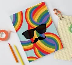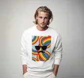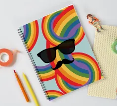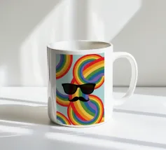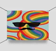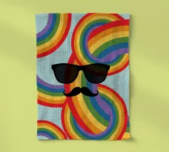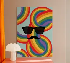 Questo poster presenta un design audace e giocoso con occhiali da sole neri e baffi classici su arcobaleni vibranti e vorticosi. La sua estetica retrò e Pop Art lo rende un pezzo forte, pieno di colore e divertimento. È la decorazione perfetta per aggiungere una dose di personalità e allegria alla sala giochi, al bar o alla camera dei ragazzi.
