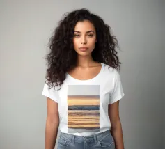 L'acqua brilla sotto la luce del sole, passando dal blu intenso al turchese vicino alla riva. Una brezza salata riempie l'aria, portando il suono dei gabbiani e il ritmico infrangersi delle onde. Impronte di piedi segnano la sabbia soffice e conchiglie sono sparse lungo la riva. È un luogo tranquillo dove l'oceano incontra la terra, infinito e vivo.