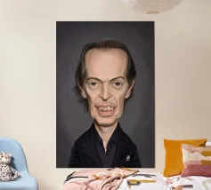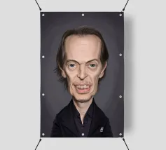 Illustrazione caricaturale umoristica del noto attore americano Steve Buscemi. Una delle caricature realizzate per la serie Celebrity Sunday, in cui un personaggio famoso viene ritratto in un giorno. L'idea è di mostrarli come in una fototessera per avere coerenza.