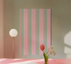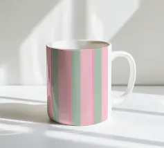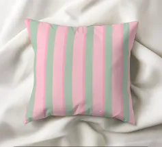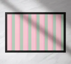 Eleganti strisce stile cabana in verde menta con una sottile ombra rosa confetto, su uno sfondo rosa pastello. Questo divertente e spensierato motivo a righe primaverile/estivo è perfetto per l'arredamento della casa, gli accessori e la moda.