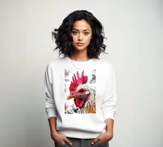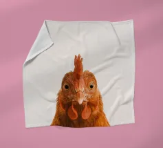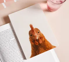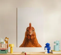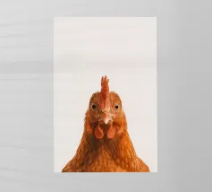 Questo pollo dà carattere alla carta, con una postura chiara, uno sguardo attento e un piumaggio finemente disegnato. Fotografata in uno stile minimalista da studio su sfondo bianco, si adatta perfettamente all'arredamento di cascine moderne, cucine, camere per bambini o gallerie di ritratti di animali minimalisti. Un'affascinante rappresentazione della vita di campagna, spiritosa, di alta qualità ed elegante allo stesso tempo. Fa parte della famosa serie "Facce da fattoria".