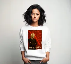 Immagine surreale di un uomo in abito formale nero e cravatta con la testa sostituita da una mano gigante che mostra un dito medio alzato. La mano regge un cartello di cartone con la scritta "WILL WORK FOR MONEY" su uno sfondo rosso.