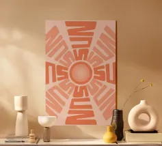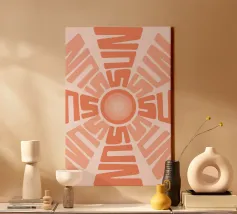 Lasciate che il sole entri con questa stampa grafica estetica con la parola 'SUN' disposta in modo creativo a formare un simbolo solare radioso. Realizzata nei caldi toni dell'arancio e del pesca su uno sfondo rosa tenue, quest'opera d'arte tipografica unica è perfetta per aggiungere calore e solarità al salotto, alla camera da letto, alla cucina o all'ufficio. Prodotta come stampa d'arte digitale di alta qualità con un'impressionante risoluzione di 7000x5000 pixel a 300 dpi, garantisce dettagli eccezionali e una brillante fedeltà dei colori, adatta alla stampa in vari formati. Un pezzo allegro e moderno per coloro che amano il design creativo e la b
