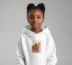 Un momento di riflessione in una stanza vestita di rosa tenue e verde giungla. Siede nell'immobilità, avvolta nella seta a righe e nel silenzio domenicale, circondata dal conforto di fiori audaci e luci soffuse.