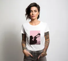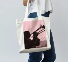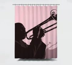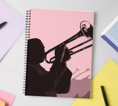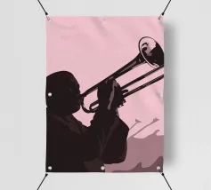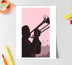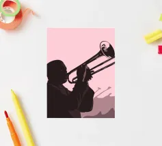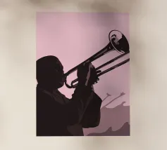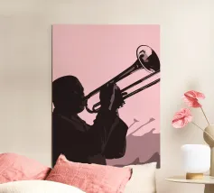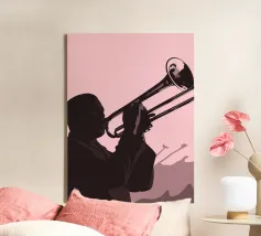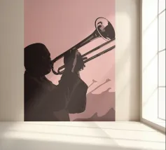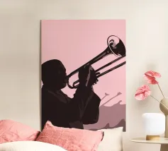 Sentite lo spirito della musica attraverso un design pieno di emozioni. L'immagine di un trombettista perso nella musica crea un'atmosfera calda e stimolante.